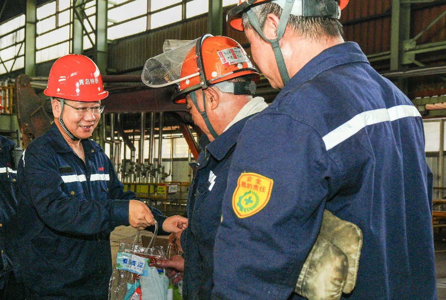 连日来,青岛持续遭遇“秋老虎”高温天气,局部气温突破35℃。为切实维护广大员工的劳动安全健康权益,8月20日,青岛特钢党委书记、总经理孙广亿带队深入一线进行走访慰问,送去关怀与清凉。工会主席、总经理助理于波,党群工作部部长、工会副主席张晓飞...