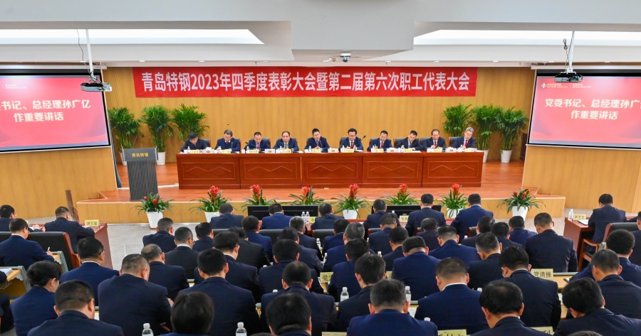 1月12日,青岛特钢召开2023年四季度表彰大会暨第二届第六次职工代表大会。青岛特钢党委书记、总经理孙广亿出席会议并发表讲话。公司总经部领导、各事业部、生产厂、职能部门中层干部,班组骨干,外协单位负责人及职工代表参会。2023年四季度表彰大...